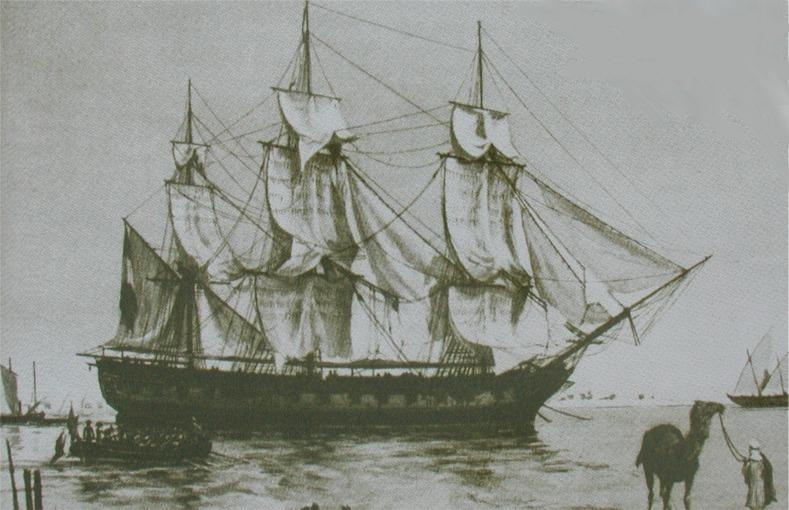 « La Muiron, prise en 1797 dans l’Arsenal de Venise par le conquérant de l’Italie. Elle ramena d’Égypte en 1799, le sauveur de la France. »