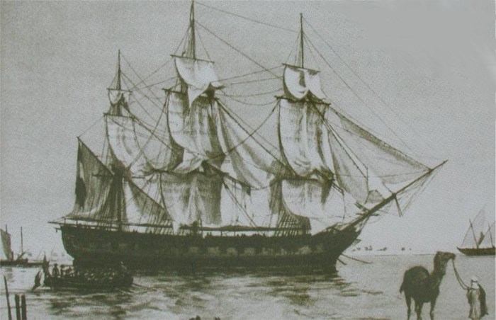Napoléon Bonaparte rentrant en France grâce la frégate Muiron à l’issue de la campagne d’Égypte, le 9 octobre 1799. Par Louis Meijer, 1843. Collections du château de Versailles.