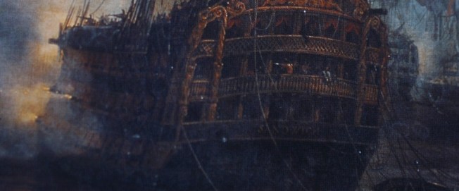Commençons par l’erreur sur l’identification du vaisseau français. Elle a été signalée je l’ai dis par Robin Brooks, peintre de marine anglais, dans les années 2000, relativement récemment donc. Dans un article consacré à ce tableau publié sur son site, il affirme que la cause de cette confusion reste un mystère pour tout le monde et émet l’hypothèse d’une erreur suite au déplacement de l’œuvre durant la Seconde Guerre mondiale et l’occupation.