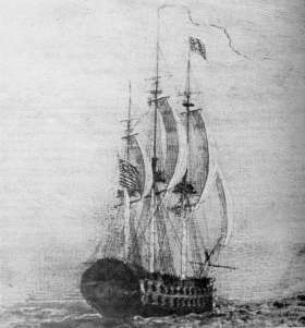 Le 9 novembre 1776, pourtant, le Congrès autorise la construction de trois vaisseaux de 74 canons, vaisseau type de la Guerre d’Indépendance. A cette époque en effet, toutes les grandes marines possèdent un nombre important de 74 canons, type de vaisseau apparu en France à la moitié du XVIIIe siècle et rapidement copié par les différentes marines européennes. Un seul vaisseau, nommé America, est finalement mis en chantier, en mai 1777, dans les chantiers de Portsmouth, New Hampshire. Sa construction durera cinq longues années, il sera le premier grand vaisseau de guerre de l’histoire de la marine américaine.