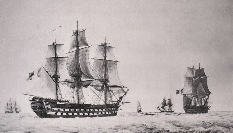 L’Orion était un vaisseau de 74 canons de type Sané (adopté en 1782) tel que celui représenté ci-dessus. D’une longueur de 55,5 mètres (172 x 44.6 x 22 pieds), il était plus petit que le 110 canons le Commerce de Paris, qui mesurait 60,5 mètres (196.6 x 50 x 25 pieds).