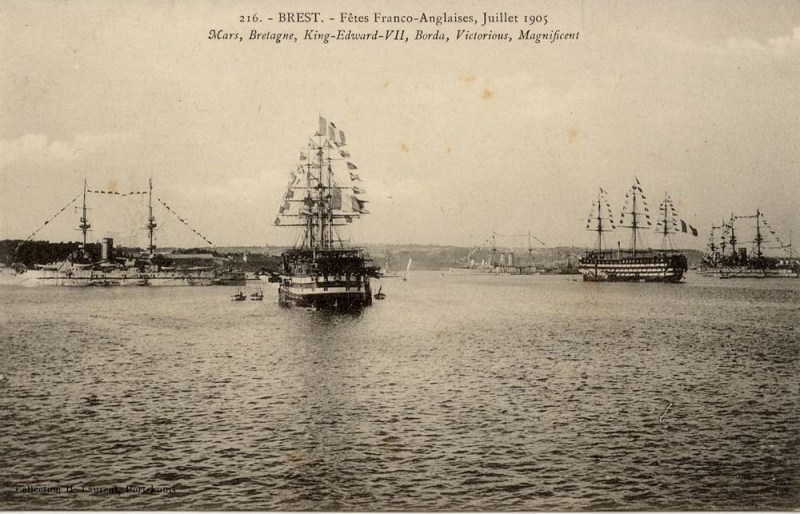En France, on peut considérer que le dernier grand vaisseau de la vieille marine à voile est le Borda, bâtiment de l’École navale, basée à Brest. Quelques anciens trois-ponts tels que le Souverain ou la Ville de Paris sont encore présents à Toulon, où ils servent de casernes flottantes jusqu’au début du XXe siècle, mais ils ne sont plus qu’en l’état de ponton pourrissant. Leur beauté passée n’est plus. Le dernier Borda, disions-nous, est l’ex-Intrépide, vaisseau à hélice de type Napoléon auquel on a ajouté un troisième pont. École navale dés 1890, il voit passer chaque jour à Brest les unités de la Marine nationale :
