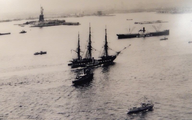 En Italie, l’Amerigo Vespucci, construit au début des années 1930, est une réplique du Re Galantuomo, frégate italienne de la seconde moitié du XIXe siècle. Il sert de navire-école utilisé, encore aujourd’hui, à la formation des élèves officiers de la Marina militare. Ici une photographie du porte-avions américain USS Independence (CVA-62) naviguant en Méditerranée à coté du voilier italien. La scène se déroule le 12 juillet 1962 :