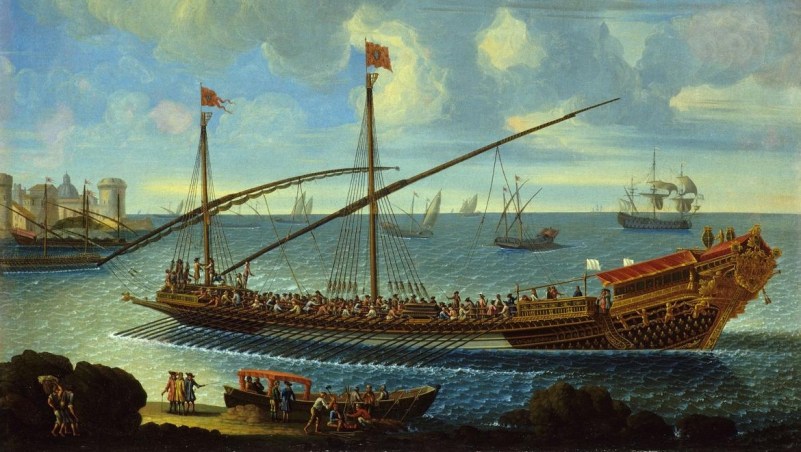 La galère « extraordinaire » la Réale rentrant au port. Peintre anonyme (fin 17e siècle). La Réale fut construite à Marseille entre 1692 et 1694 par Jean-Baptiste Chabert.