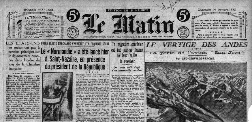 Publié 23 septembre 2015 à 1023 × 498 dans L’usage de l’article devant les noms des navires ← Précédent Suivant → Une du journal Le Matin du 30 octobre 1932.