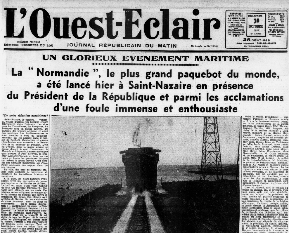 Publié 23 septembre 2015 à 989 × 798 dans L’usage de l’article devant les noms des navires ← Précédent Suivant → Une du journal L’Ouest-Eclair du 30 octobre 1932.
