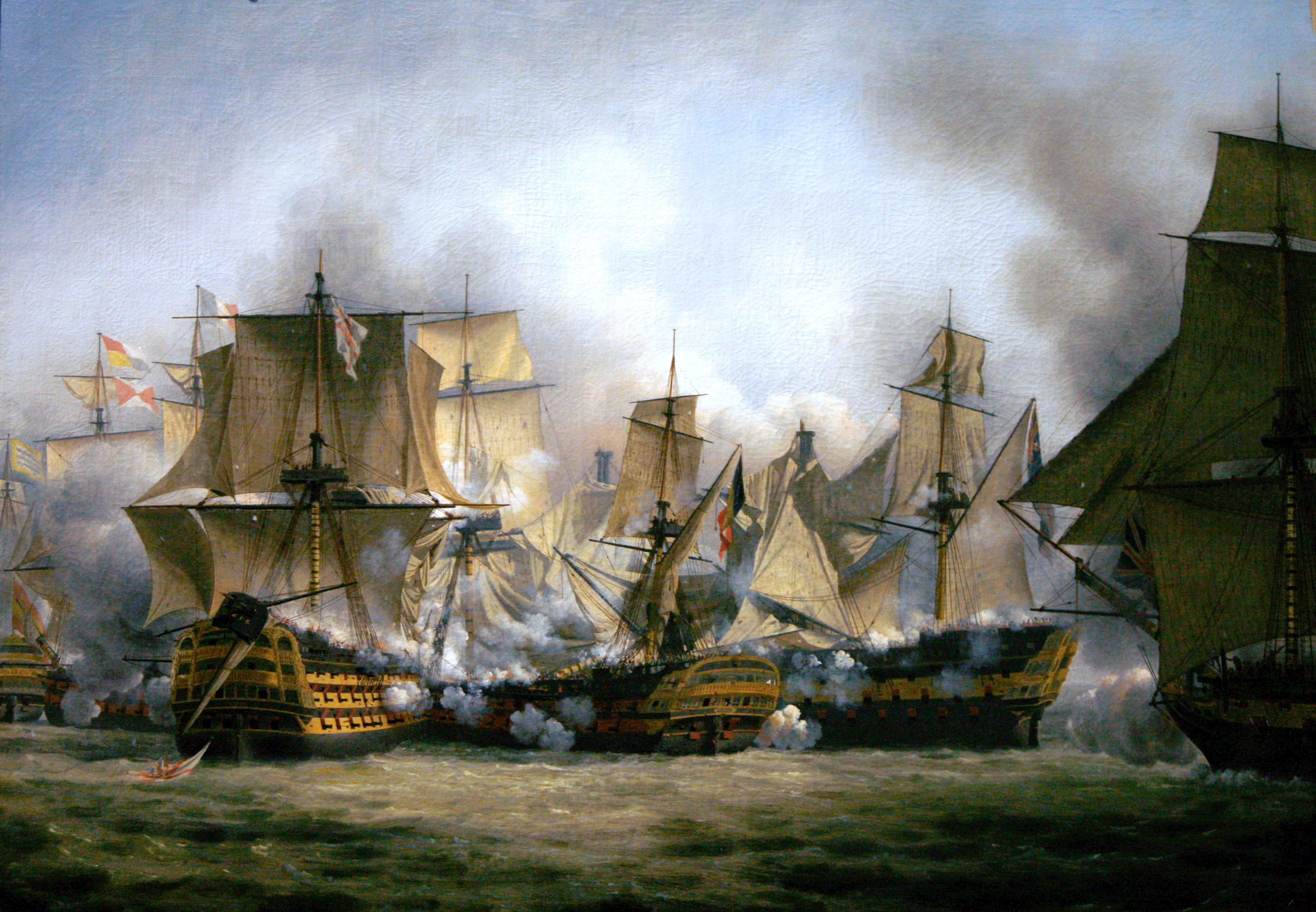 Publié 21 octobre 2016 à 3454 × 2395 dans Pour en finir avec huit idées fausses sur la bataille de Trafalgar (21 octobre 1805) ← Précédent The Redoutable (centre) fighting the Temeraire (left) and HMS Victory (right), by Louis-Philippe Crépin