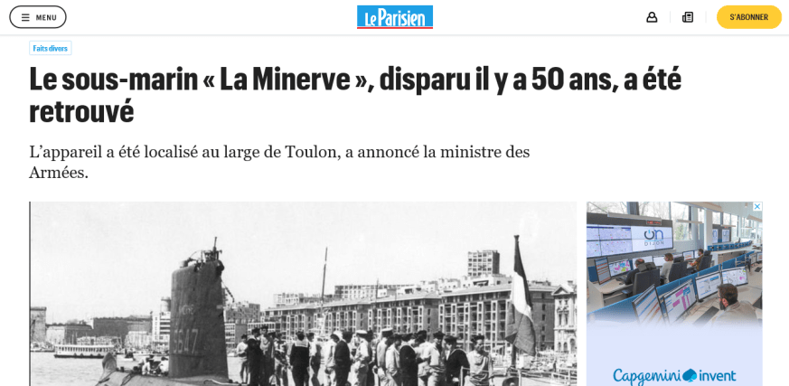 le parisien Publié 22 juillet 2019 à 1343 × 657 dans Doit-on dire « le sous-marin la Minerve » ou « le sous-marin Minerve » ? ← Précédent