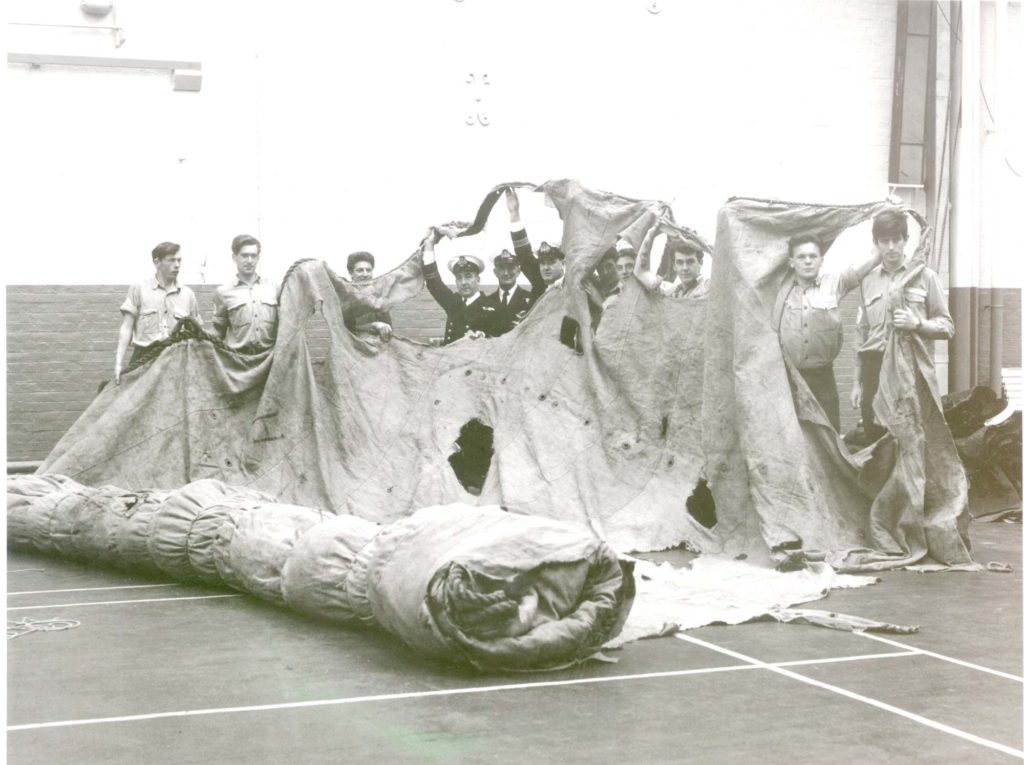 Rare photographie (crédit : Bruce Buckland) d’un trésor du patrimoine naval, britannique mais pas seulement : celle d’une voile du fameux HMS Victory, vaisseau-amiral d’Horatio Nelson pendant la bataille de Trafalgar (21 octobre 1805). Conservée par les Britanniques pendant un siècle avant d’être quelque peu oubliée, elle fut retrouvée tout à fait par hasard au début des années 1960.