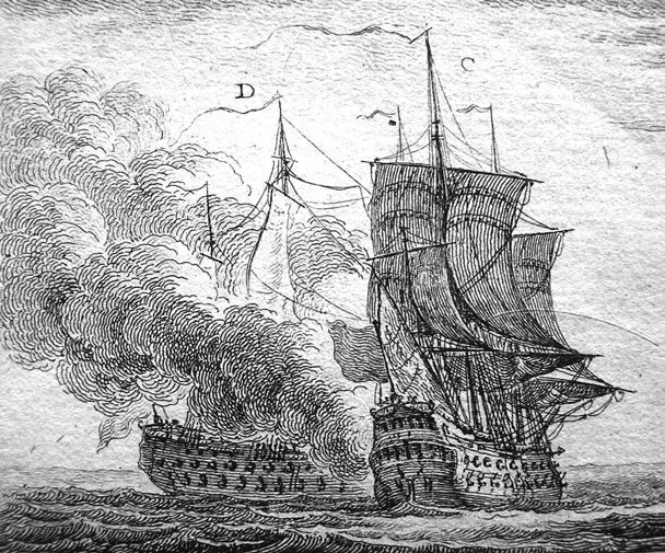 Combat naval entre deux vaisseaux (extrait), Nicolas Ozanne, Marine Militaire, 1762.