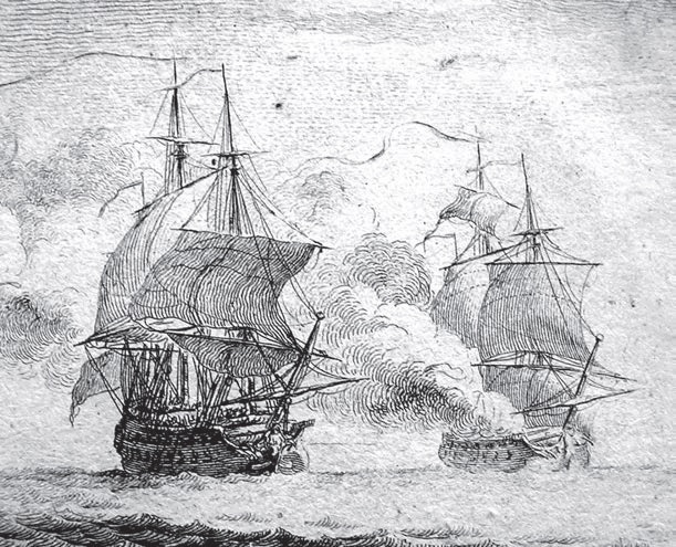 Combat naval entre deux vaisseaux (extrait), Nicolas Ozanne, Marine Militaire, 1762.