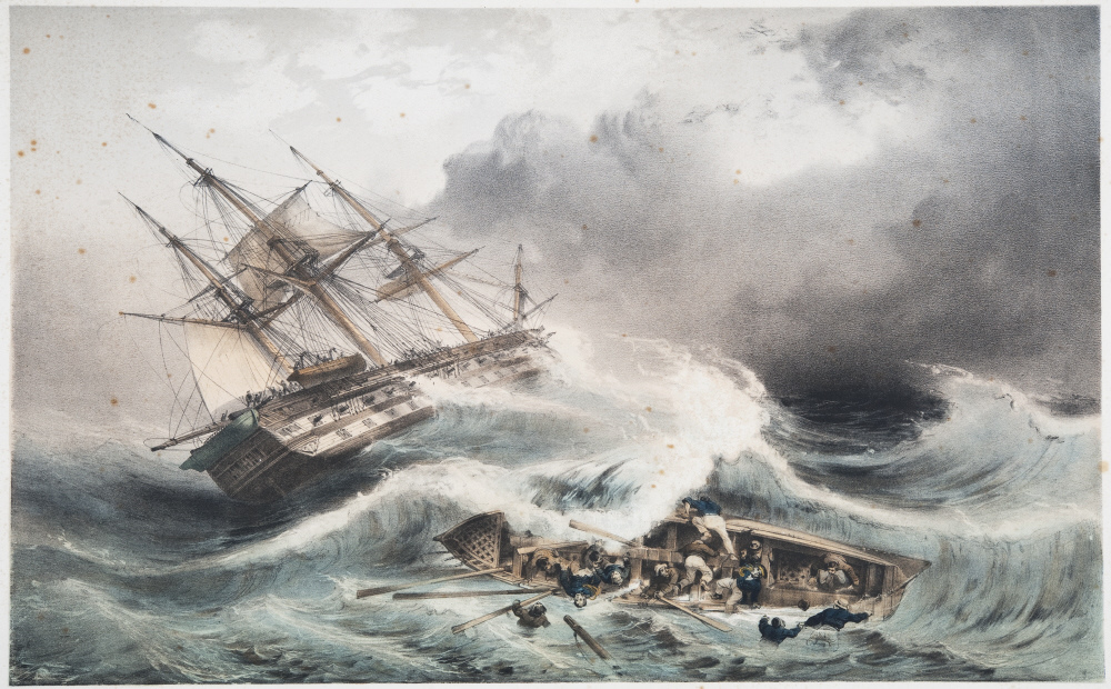 Cette œuvre d’Auguste Mayer représente le combat du trois-ponts français le Wagram (à droite), le 5 novembre 1813, au large de Toulon, contre plusieurs vaisseaux anglais. Voici un bref récit de ce combat :