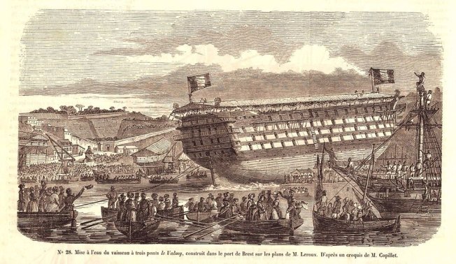 « C’est aujourd’hui mardi, 28 février, dans l’après-midi, que doit être lancé des chantiers de Rochefort le Louis XIV. Ce vaisseau est de premier rang, c’est-à-dire de 120 canons, il est mis en chantier depuis 1811. On le considère comme l’un des plus magnifiques navires de la flotte française.